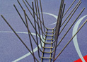 This bird deterrent ledge is made of long lasting stainless steel 1.4301. In the uppe r part the 2 mm (0.08 inches) strong blunt wires cover a width of 150 mm (5.91 inches).